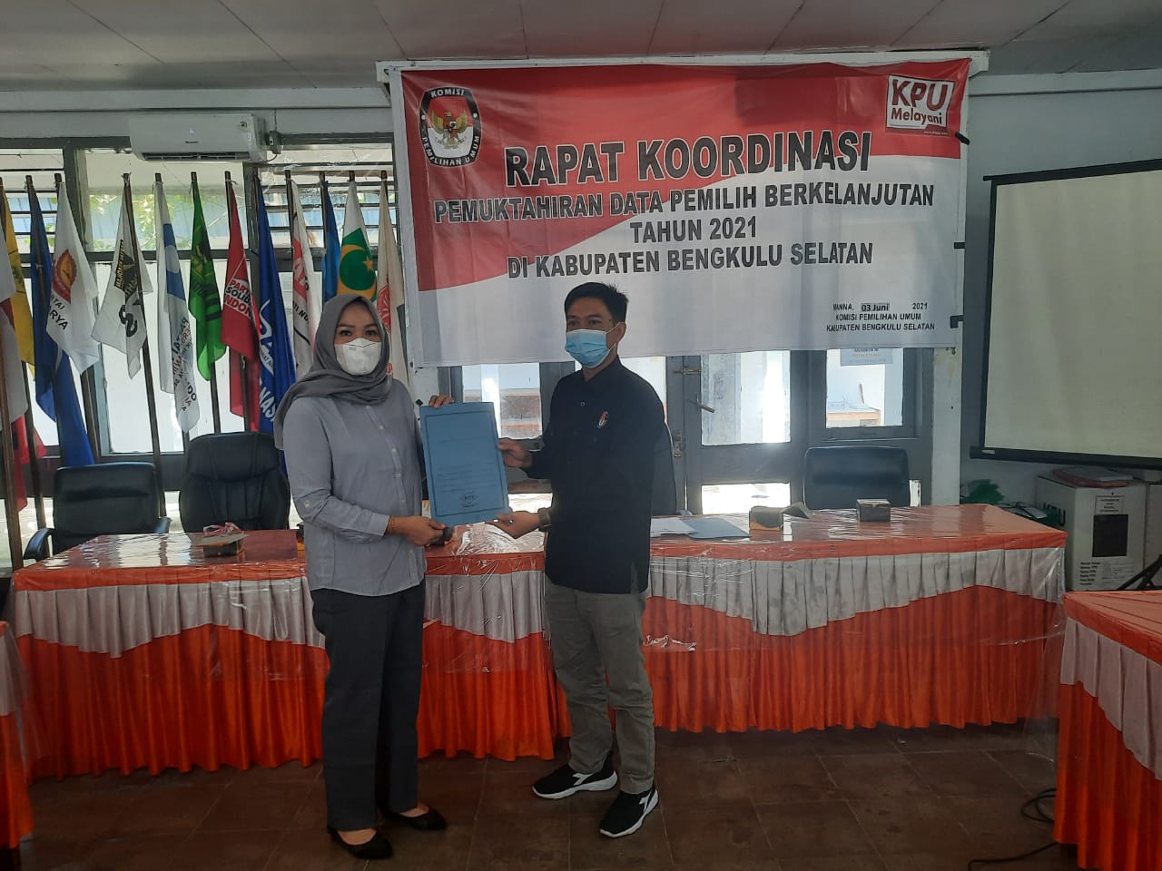 03/06/2021 Anggota Bawaslu Kabupaten Bengkulu Selatan Erina Okriani, S.Pd Menghadiri Undangan KPU Kabupaten Bengkulu Selatan Nomor: 32/PL.021-Und/1701/KPU.Kab/VI/202 Perihal Undangan Rapat Koordinasi Pemuktahiran Data Pemilih Berkelanjutan Tahun 2021.