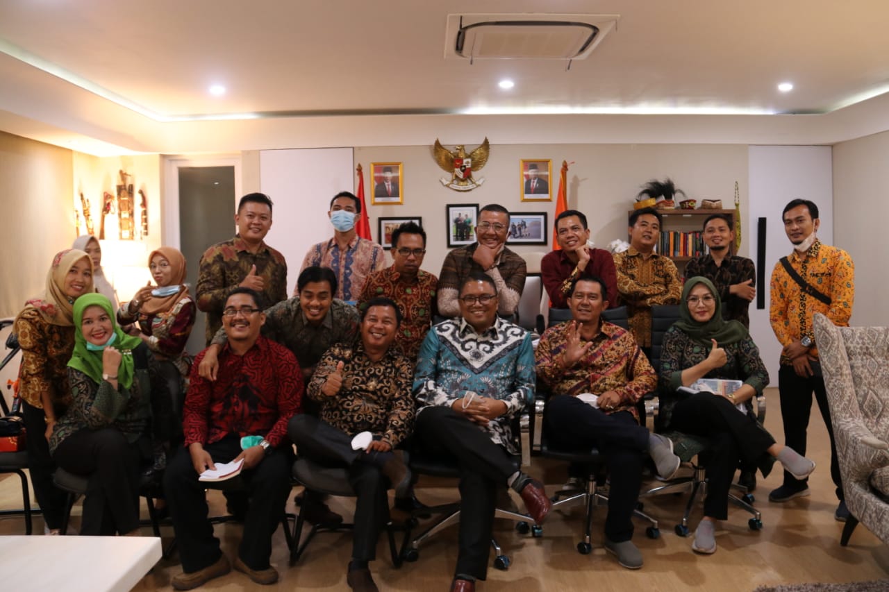 Kedatangan Anggota Bawaslu Kabupaten Bengkulu Selatan berbarengan dengan Anggota Bawaslu Provinsi Bengkulu serta Anggota Bawaslu kabupaten kota Se-Provinsi Bengkulu di sambut langsung oleh Anggota Bawaslu RI Fritz Edward Siregar