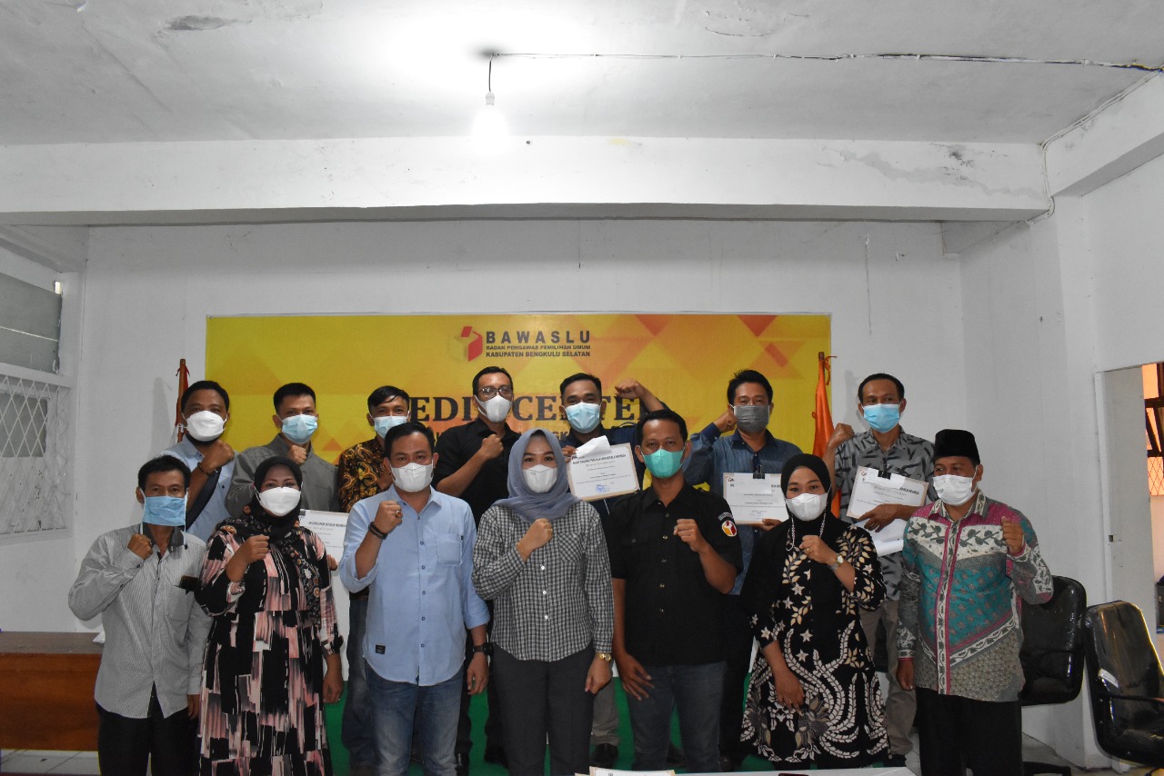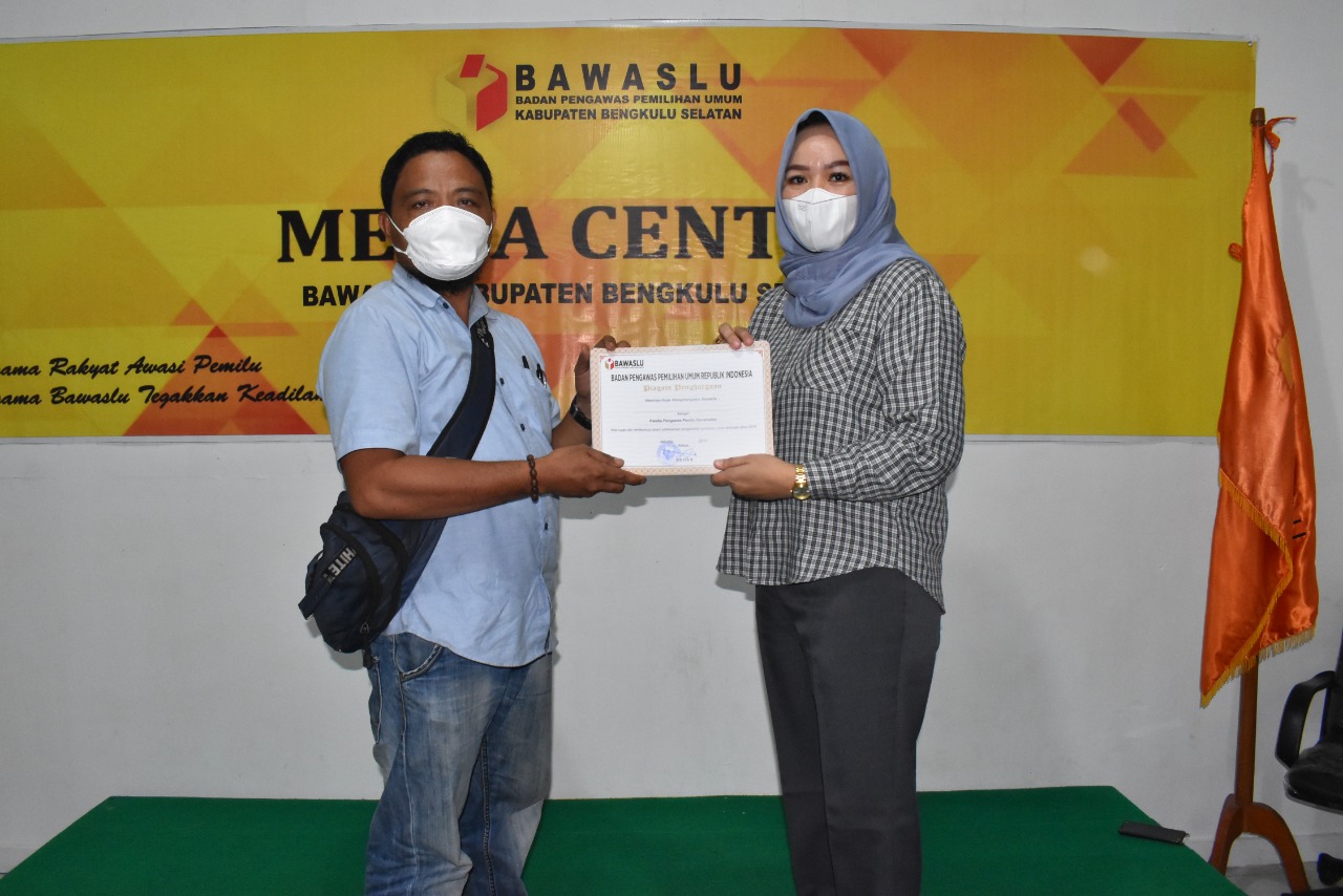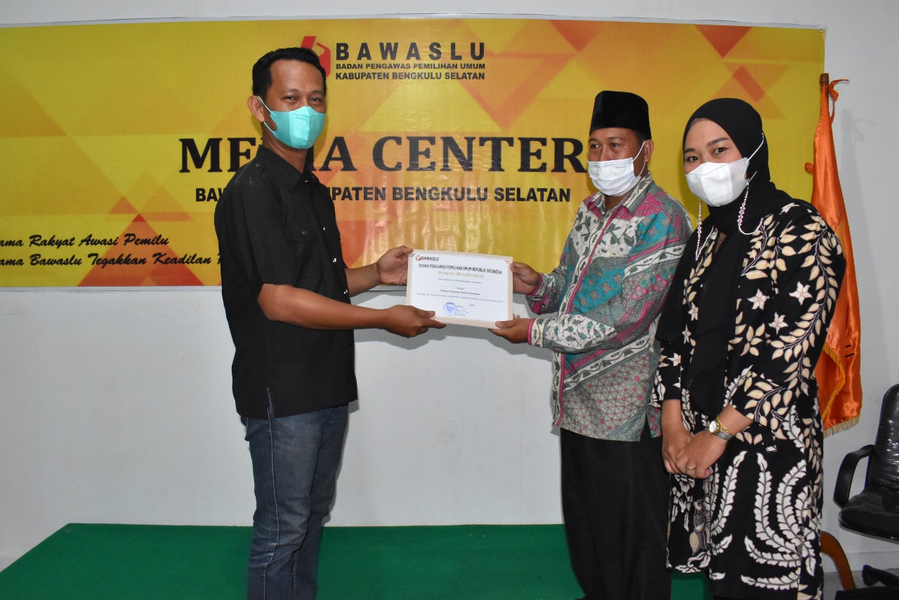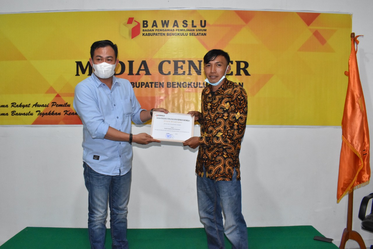 Kota Manna – Badan Pengawas Pemilihan Umum (Bawaslu) Kabupaten Bengkulu Selatan membagikan sertifikat Pengawas Pemilu pada hari senin (12/7/2021). Acara penyerahan sertifikat ini dilakukan di Ruangan Media Center Sekretariat Bawaslu Kabupaten Bengkulu Selatan.