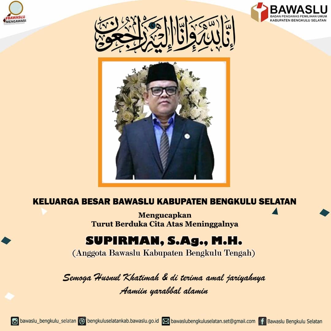 Duka Mendalam Keluarga Besar Bawaslu Se Provinsi Bengkulu Atas Meninggalnya Anggota Bawaslu Kabupaten Bengkulu Tengah SUPIRMAN, S.Ag., M.H
