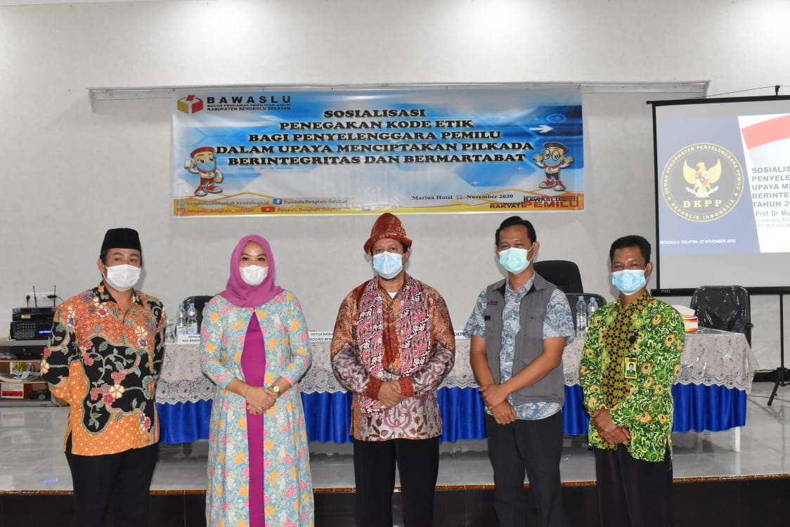 Hari Minggu tanggal 22 november 2020 pukul 15:27 WIB bertempat di hotel Marina 2 Manna, Bengkulu Selatan, Ketua Dewan Kehormatan Penyelenggara Pemilu Republik Indonesia Prof.Dr.Muhammad , S.IP,M.Si hadir ke Kabupaten Bengkulu Selatan dan menyampaikan materi sebagai Narasumber Sosialisasi Penegakkan Kode Etik Bagi Penyelenggara Pemilu Dalam Upaya Menciptakan Pilkada Berintegritas dan Bermartabat.
