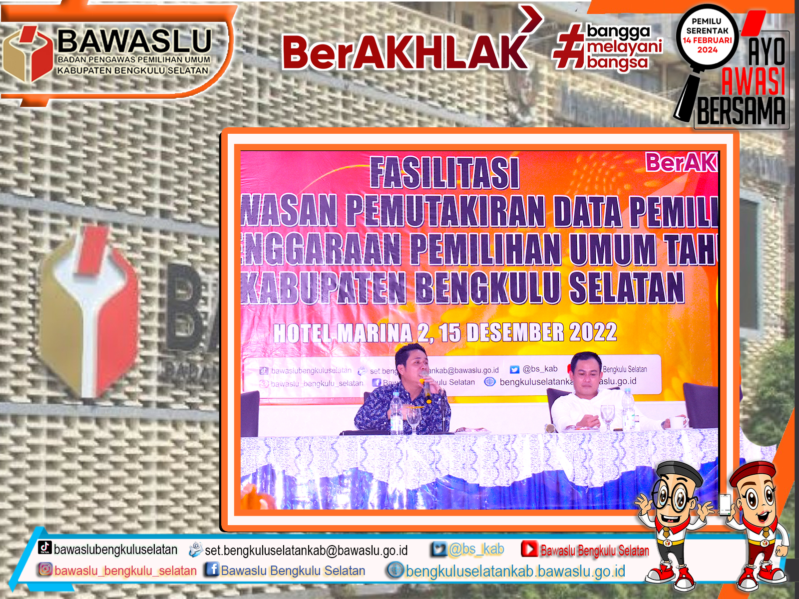 Bawaslu Bengkulu Selatan, Sesi ke 3 Narasumber pada kegiatan Fasilitasi Pengawasan Pemutakhiran Daftar Pemilih (DPT) yang diselenggarakan Bawaslu Bengkulu Selatan menghadirikan Elfahmi Lubis selaku akademisi sekaligus Mantan Tim Pemerika Daerah Dewan Kehormatan Penyelenggara Pemilu (TPD DKPP). Kamis, 15 Desember 2022.