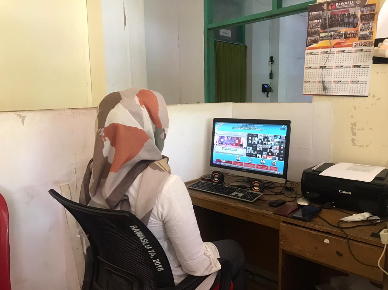 (Kamis, (12/08/2021).Ketua Bawaslu Kabupaten Bengkulu Selatan Azes Digusti dan Angota Bawaslu Kabupaten Bengkulu selatan Erina Okriani, mengikuti kegiatan Webinar Peningkatan Partisipasi Masyarakat dalam kehidupan berdemokrasi yang di selenggarakan oleh Ditjen Politik dan PUM yang dilakukan secara Daring