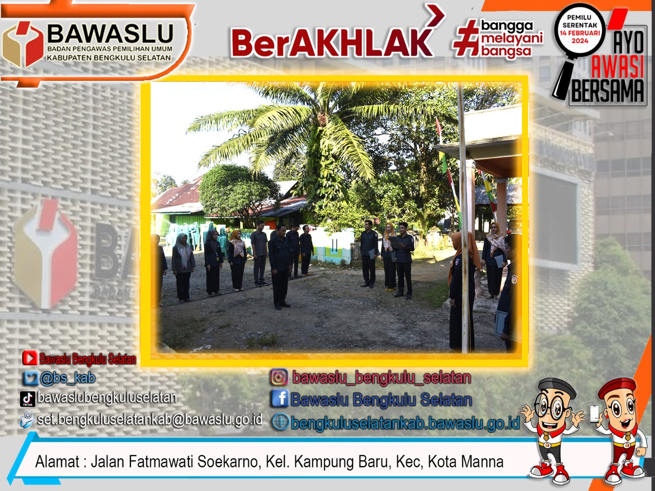 Dalam sambutannya, Latih (sapaan akrab) mengingatkan kepada seluruh staf Bawaslu Bengkulu Selatan agar siap melaksanakan pengawasan yang sedang berjalan yaitu Pengawasan Verifikasi Faktual (Verfal) Partai Politik. Beliau juga menyampaikan selain melakukan pengawasan verifikasi, kemudian akan dilaksanakan juga kegiatan Sosialisasi terhadap Disabilitas dalam bulan ini, serta tingkatkan kedisiplinan sebagaimana janji Korps Pegawai yang diucapkan pada setiap apel.
