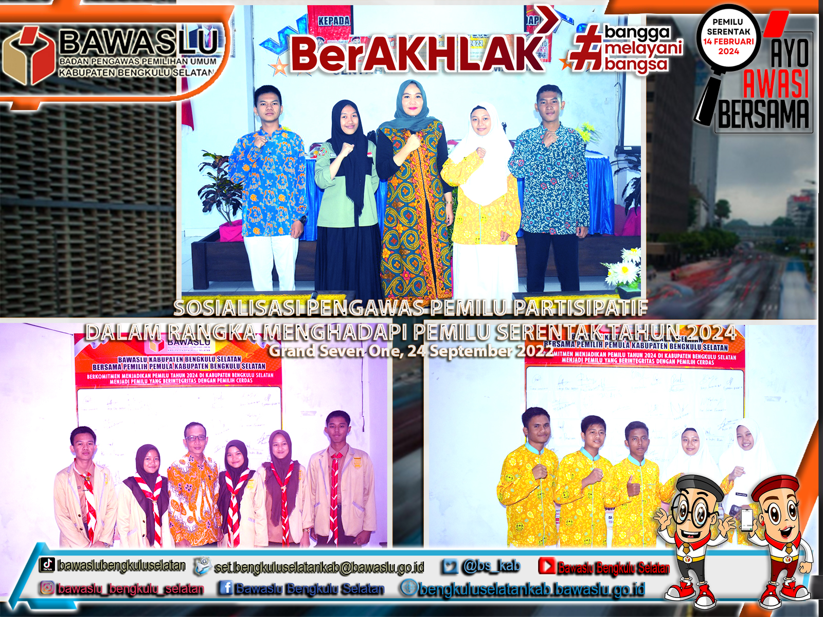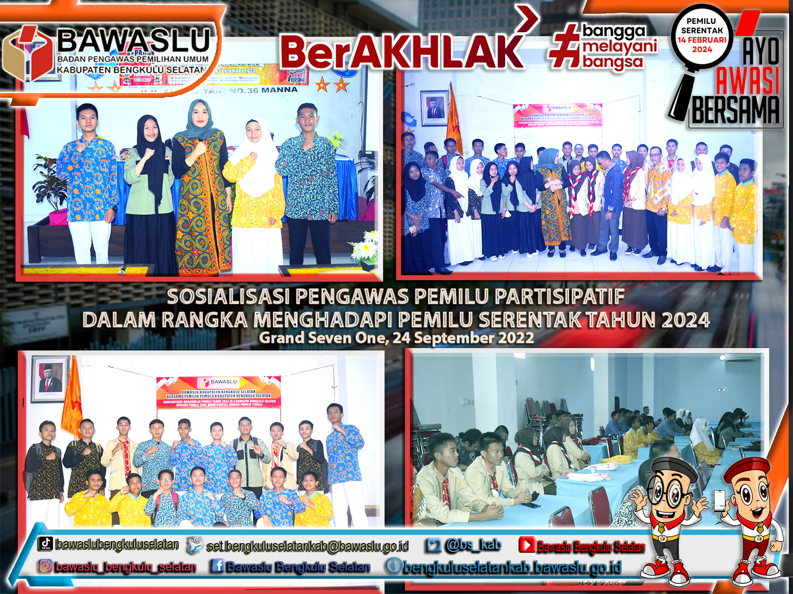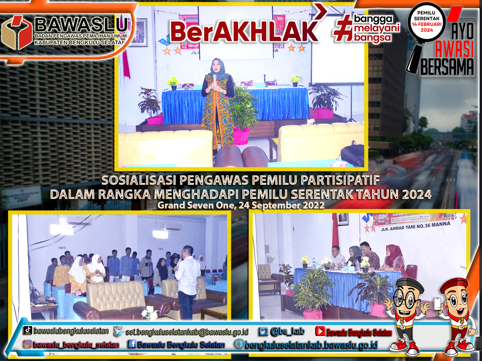 Bawaslu Bengkulu Selatan, Sosialisasi Pengawasan Pemilu Partisipatif Kepada Pemilih Pemula Dalam Rangka Menghadapi Pemilu Serentak Tahun 2024 yang diselenggarakan Bawaslu Kabupaten Bengkulu Selatan di Hotel Seven One, 24 September 2022.