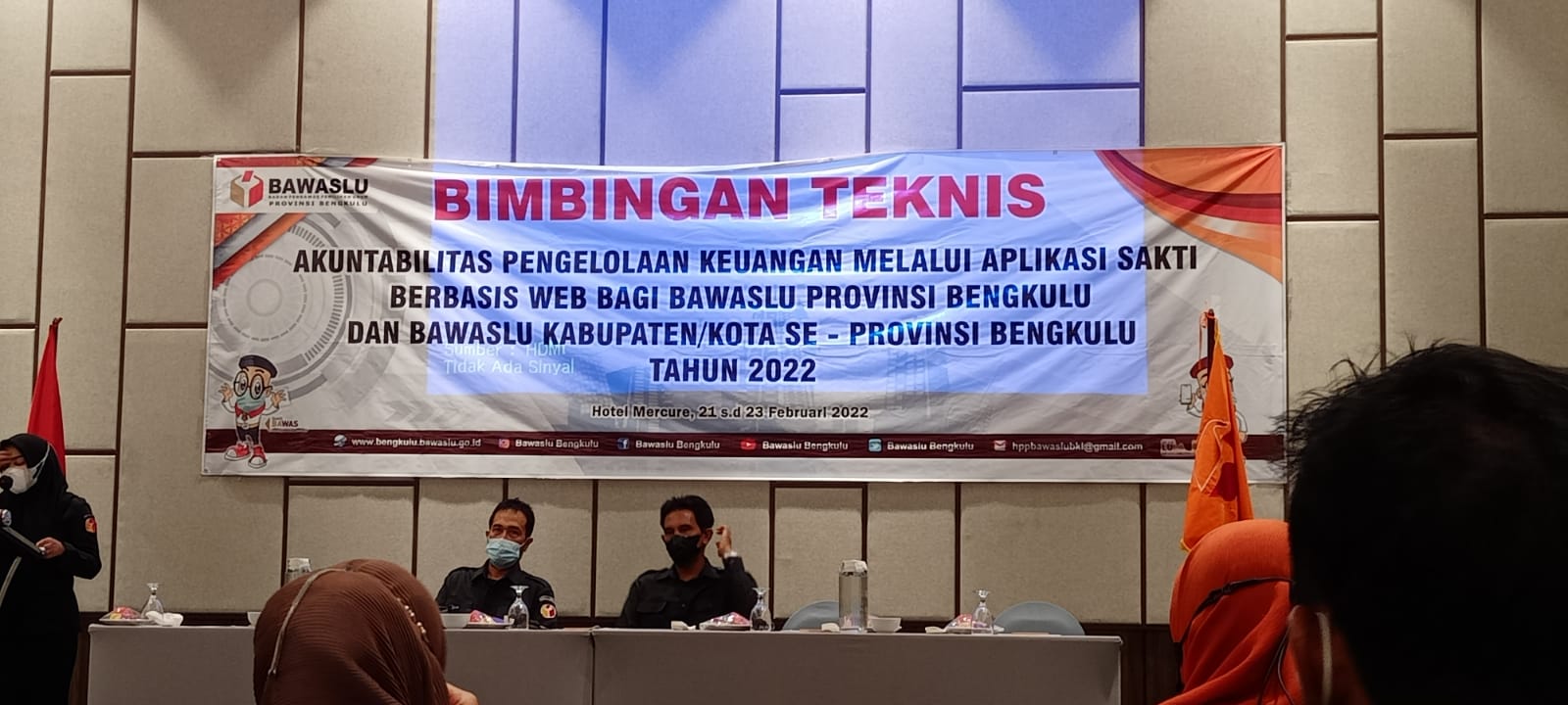 Koordinator Sekretariat Bawaslu kabupaten Bengkulu Selatan dan BPP Bawaslu kabupaten Bengkulu Selatan,Serta 1 Orang Staf Operator Aplikasi Sakti Bawaslu Kabupaten Bengkulu Selatan, Mengikuti kegiatan Bimbingan Teknis Akuntabilitas Pengelolaan Keuangan melalui Aplikasi SAKTI Berbasis Web bagi Bawaslu Provinsi dan Bawaslu Kabupaten/ Kota se-Provinsi Bengkulu. Kegiatan ini diselenggarakan di hotel Mercure Bengkulu, 21 s.d 23 Februari 2022