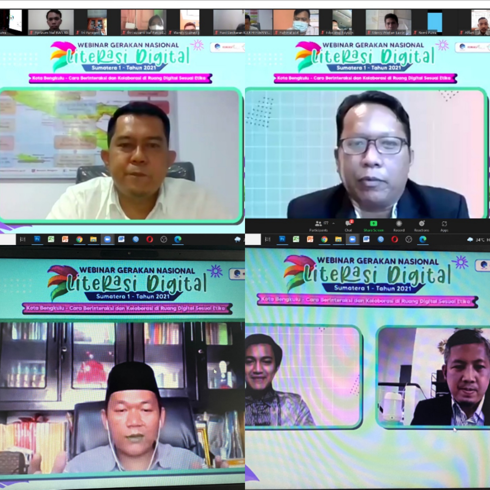 Webinar yang di selenggarakan oleh Kominfo ini menghadirkan 4 narasumber yakni Anwar Fattah (Dosen dan Cyber Security Officer IT PHKT), Ardi Lunardi, S. TP, Dodi Herwansyah (Anggota Bawaslu Provinsi Bengkulu) dan H. Evan Trijasa (Pimred Media Berandang.com) dan Key opinion Leader Kiki Bakri (Desaigner).