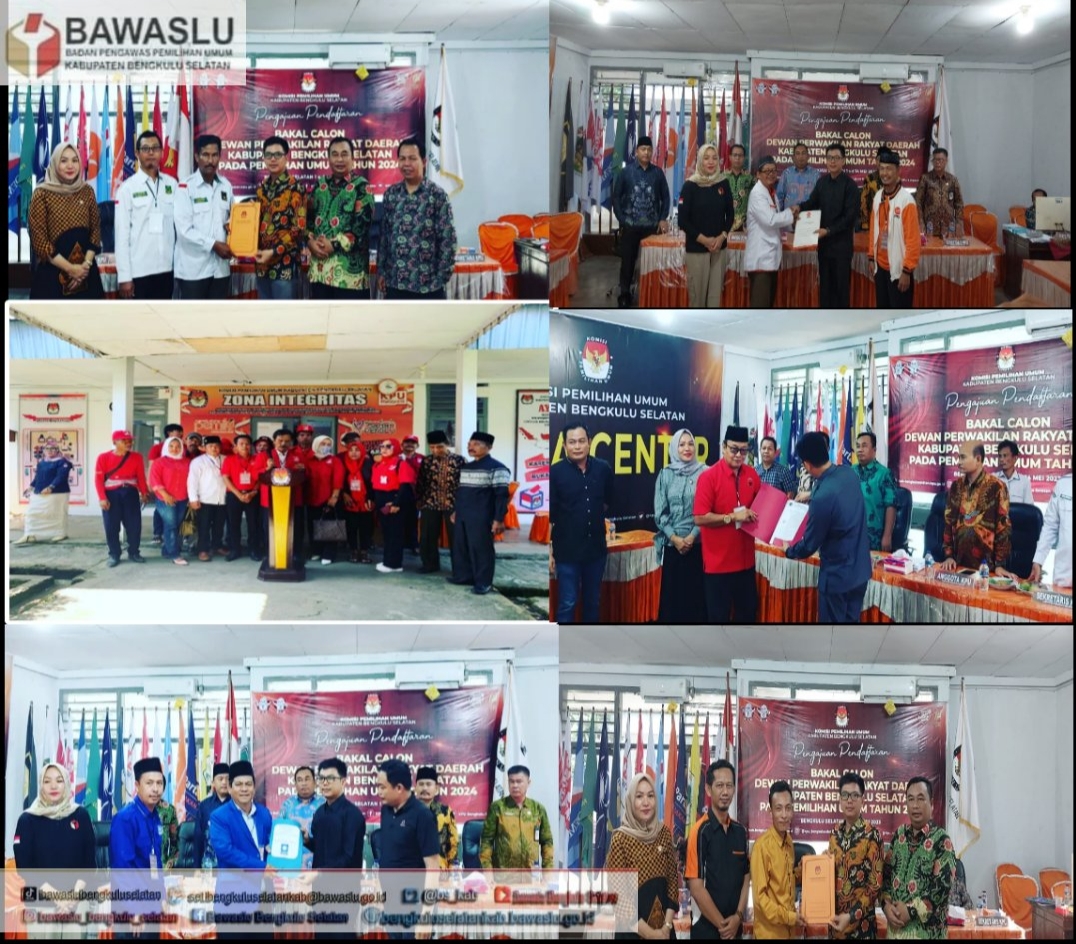 Dia juga meminta pengawas pemilu untuk bekerja sepenuh waktu, karena tahapan Pemilu 2024 tidak mengenal hari kerja. Sebagai informasi, hingga batas terakhir, yaitu pada tanggal 14 Mei yang lalu, 18 Partai Politik di Kabupaten Bengkulu Selatan telah selesai melakukan pendaftaran Bacaleg Anggota DPRD mereka masing-masing ke KPU Bengkulu Selatan. Adapun partai politik yang menyampaikan pendaftaran ke KPU Bengkulu Selatan antara lain :