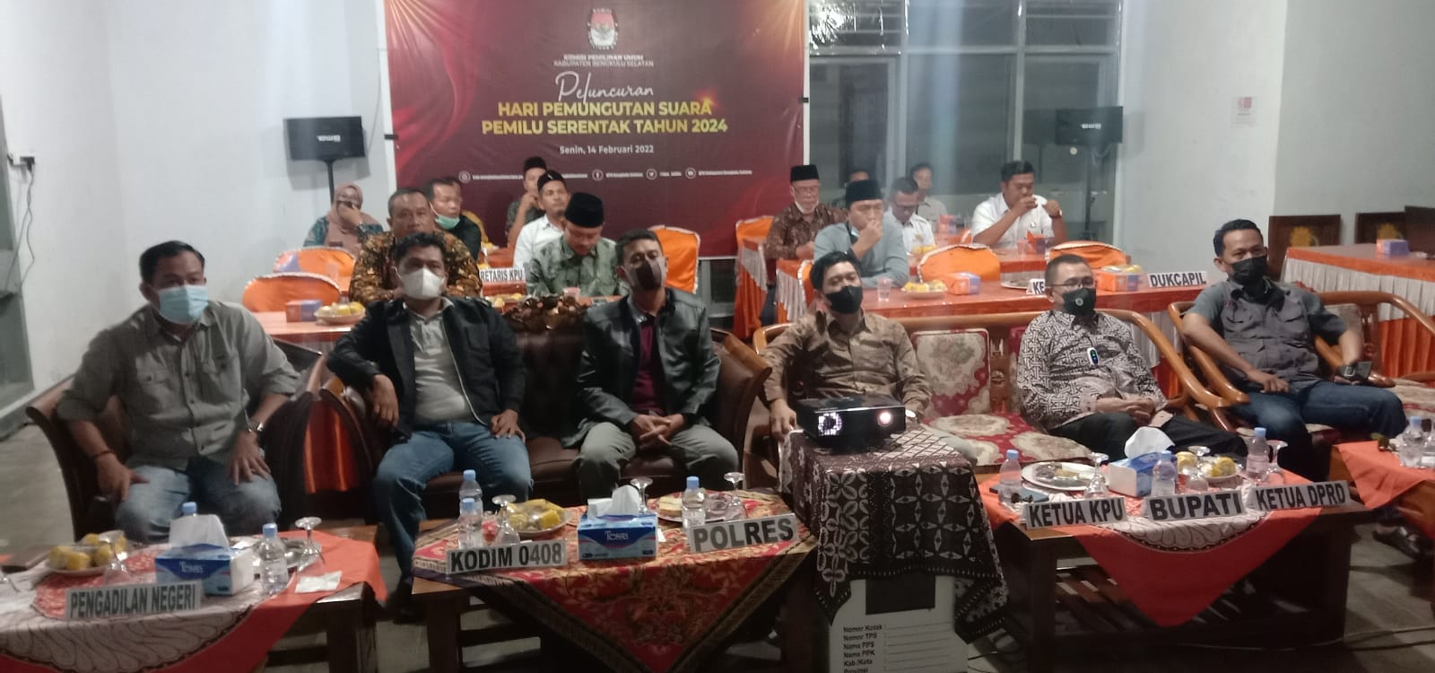 Senin (14/2/2022).Ketua Bawaslu Kabupaten Bengkulu Selatan Azes Digusti Dan Anggota Bawaslu Kabupaten Bengkulu selatan, Noor Muhammad Tomi ,menghadiri acara nonton bersama lounching/peluncuran hari pemungutan suara pemilu serentak Tahun 2024 yang diselenggarakan KPU RI secara daring di Media Canter KPU Kabupaten Bengkulu Selatan,