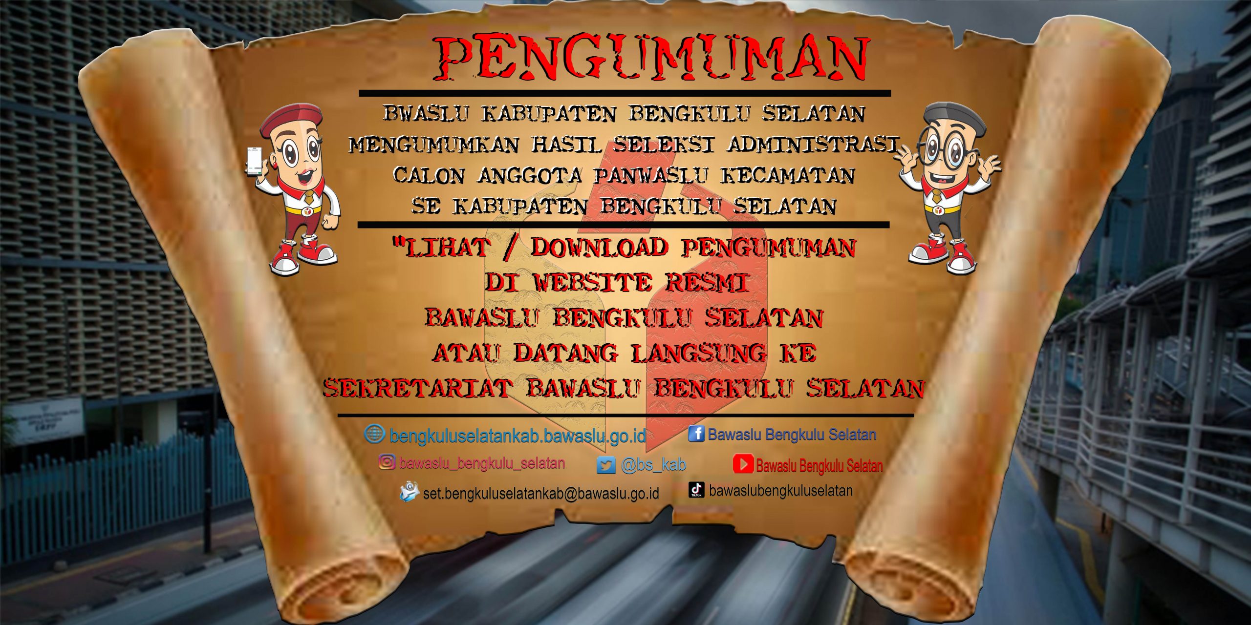 PENGUMUMAN HASIL SELEKSI ADMINISTRASI REKRUTMEN CALON ANGGOTA PANWASLU KECAMATAN SE KABUPATEN BENGKULU SELATAN